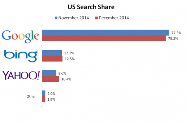 Google在美国搜索市场的份额跌落至自2008年以来的最低值,更关键的是,雅虎则创下自2009年以来的最高值。